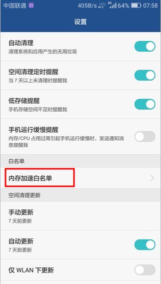 4、点击“内存加速白名单”